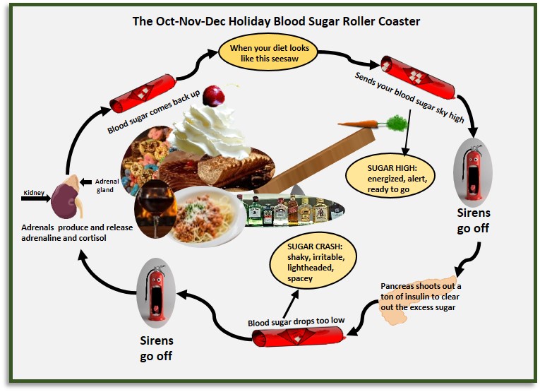 | Want to know if you are already on the Blood Sugar Roller Coaster? Click on the image below to take a quiz and find out. P.S. Don't think for one second that you can't cook up the most amazing holiday feast and still keep your blood sugar in check! Asparagus and cheese souffle, Bacon wrapped shrimp, butternut squash soup, sweet potato bacon tots, and Thanksgiving stuffing meatballs are just a few examples of delicious balanced dishes. Here is a longer list of tasty holiday recipes to help keep your blood sugar happy. |